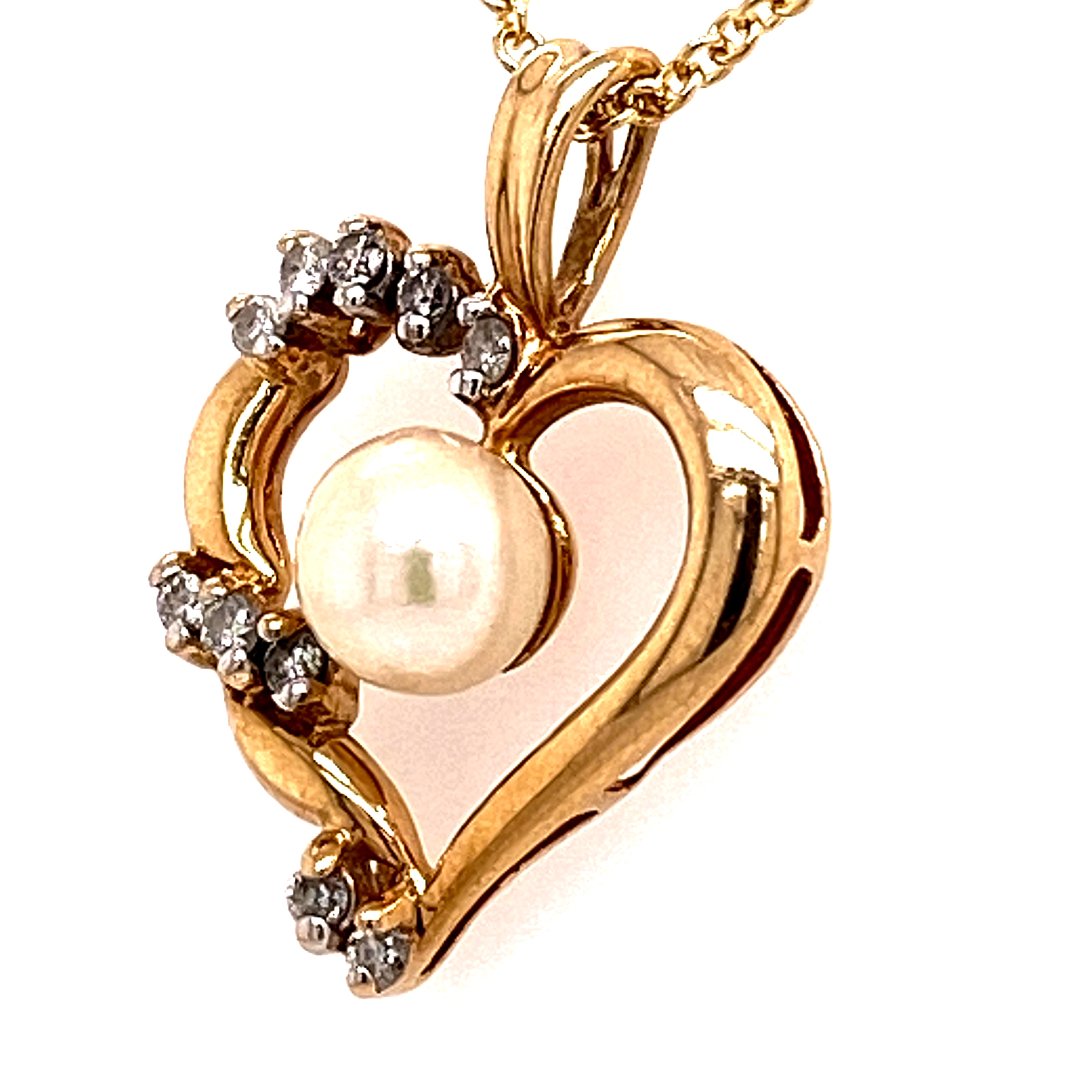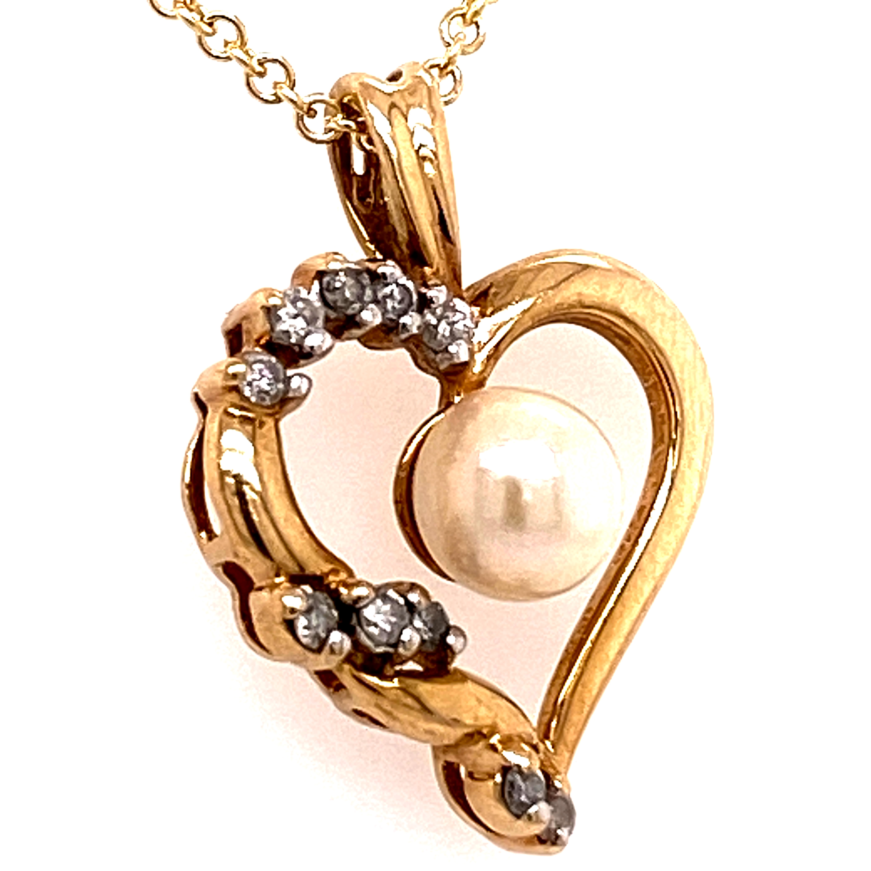 YELLOW GOLD HEART PENDANT WITH PEARL CENTER & DIAMONDS