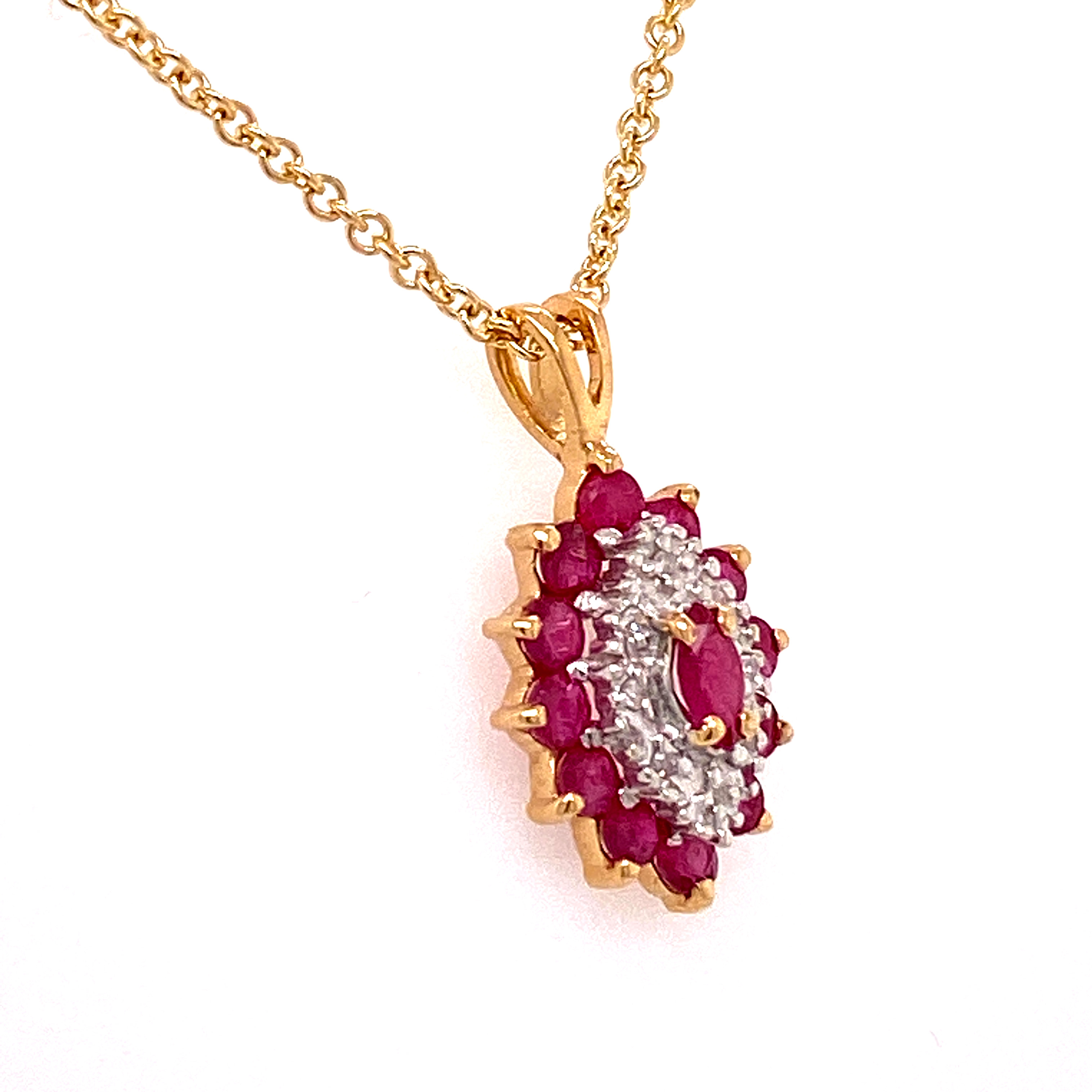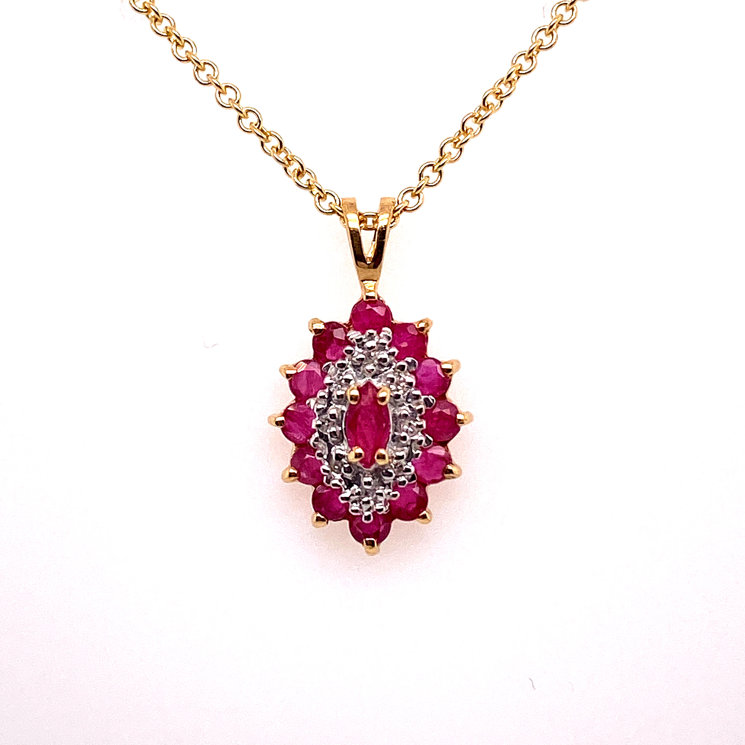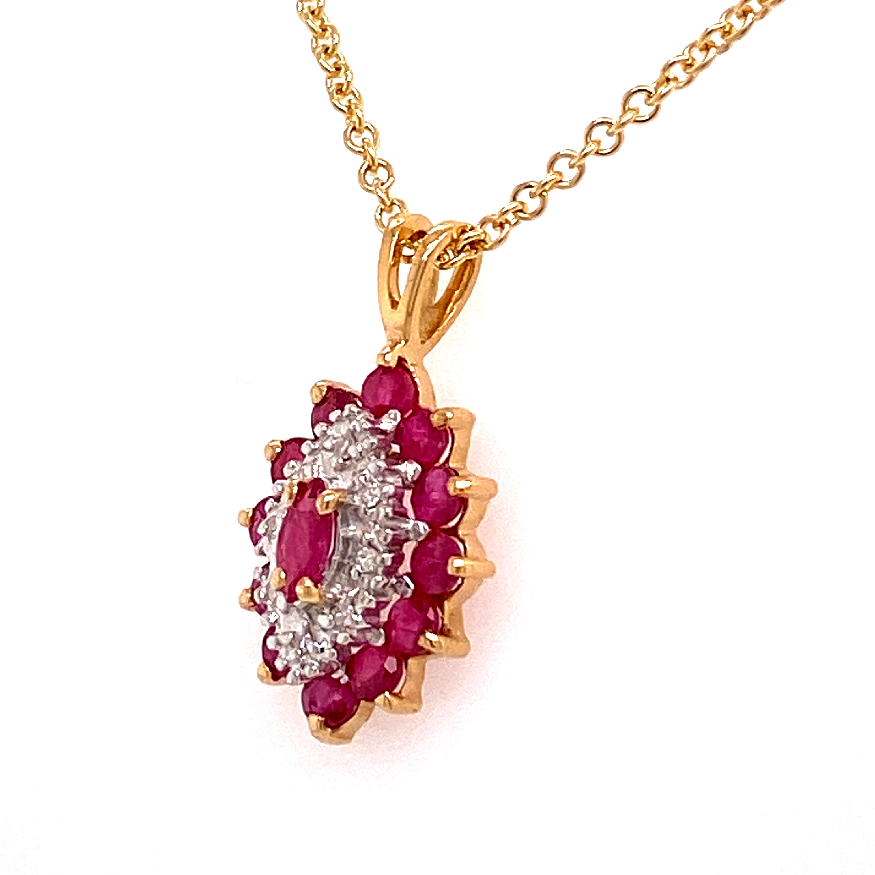 RUBY AND DIAMOND PENDANT WITH MARQUISE RUBY CENTER STONE