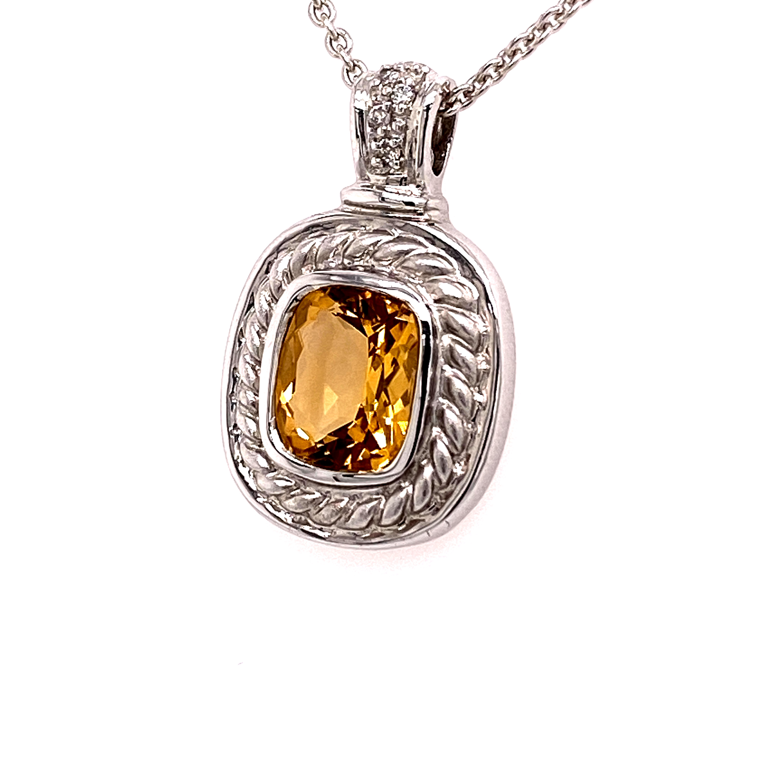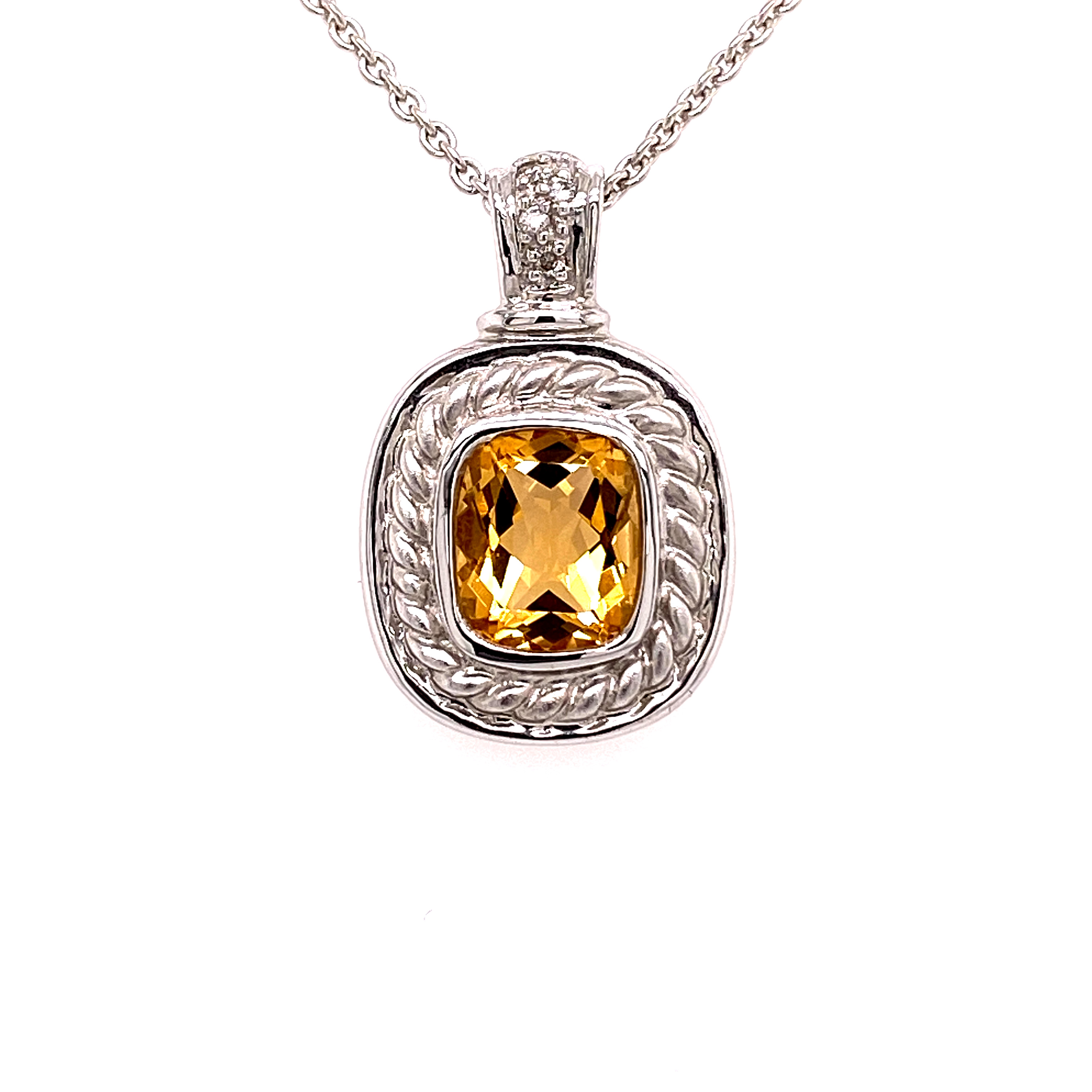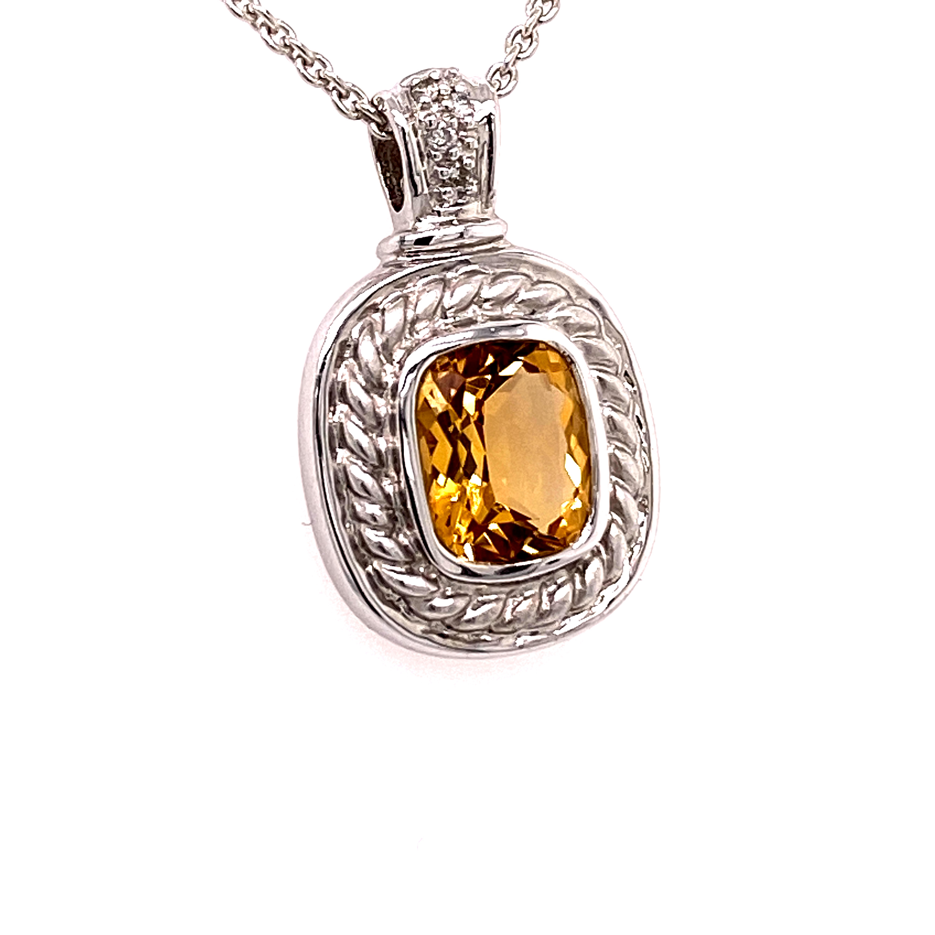 14k White Gold Pendant With Citrine Center Stone and Diamond Bale 0.02 ct